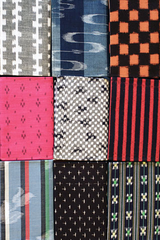 でも、じつは久留米絣の柄はさまざま。とくに近年では、キレイな色合いのものやダイナミックな柄の絣もたくさん織られているんですよ。もちろん昔ながらの久留米絣の伝統柄は今でも織られています。また、そのなかでも藍染(手染め)で手ぐくり、手織りのものは“重要無形文化財”に指定されていて、こちらも少量ながらつくられています。