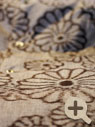 [1] 糸を束ねて、藍色に染まってほしくない部分を「あらそう」という糸で括ります。このときのちょうど良い力加減や技は、熟練の職人のみが知るところです。